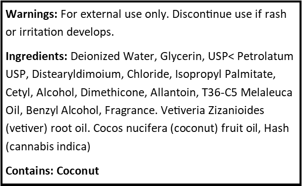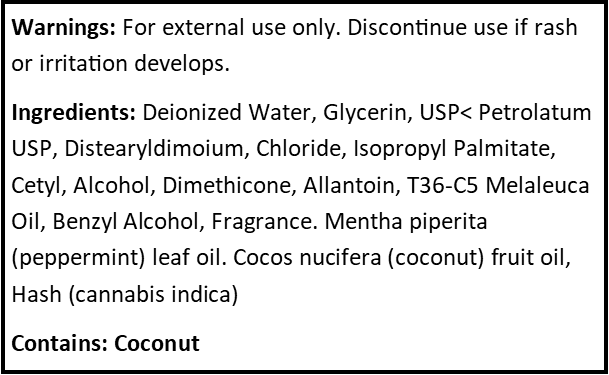 MFG Note: All lotion is made with 1 gram of hash rosin per 2 oz of solution.